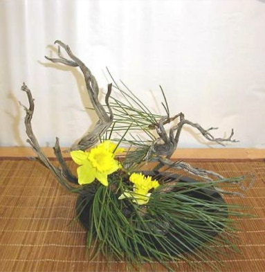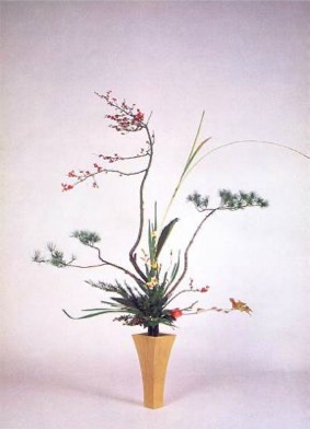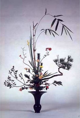 Ce bouquet traditionnel, pratiqué encore dans l'école Ikenobo, se réfère à la triade chinoise "ciel, homme et terre" dont le riche symbolisme mérite d'être précisé car il imprègne la structure du bouquet japonais.