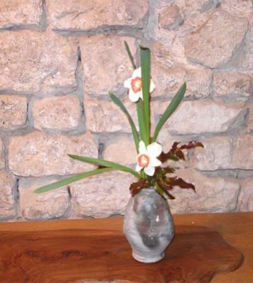 Le chabana est un bouquet modeste, sans fracas. Il ne risque pas d'assourdir mais éveille des échos, ne cherche pas à éblouir mais suggère l'essentiel. Comme le paysage c'est un bouquet allusif, mais il est emblématique : son esthétique est celle du presque rien que l'on retrouve dans les haïkus, les minuscules poèmes d'Ungaretti -Je m'éblouis / d'infini - , dans le "minimal art", et aussi dans la beauté simple qui surgit parfois sous nos pieds : "Ce qui compte c'est une fleur apparue entre des dalles disjointes, ou même moins encore. Il nous faut simplement montrer cela, dans la sérénité d'une attente inexprimable." Le chabana montre cela : un indice de l'indicible, une fleur qui résume tout et pose une question métaphysique. Il ne décore pas le réel, il le dévoile. Bref affleurement d'une beauté originelle et ultime, irreprésentable donc, il ne dessine pas de figure, ne construit pas d'espace. C'est un bouquet qui opère un suspens du désir, nous fait la grâce d'un instant d'attention, qui s'efface pour que nous aussi, dans un silence attentif, disparaissions. "La beauté n'est pas donnée à nous qui la forçons... mais peut-être à l'attente, au silence discret, à celui qui est oublié dans les louanges et simplement accroît son amour en secret."