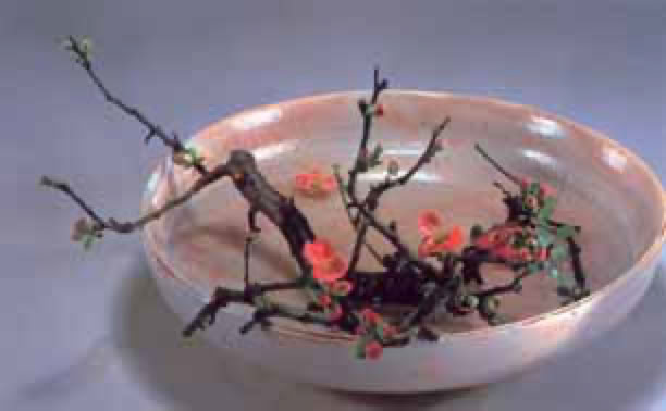 En réalisant un bouquet, l'ikebaniste crée un micro-monde. Ce faisant, il se reporte à la création du monde, s'identifie à l'origine, à la source de l'univers, et l'énergie qui le traverse et l'inspire dans sa création tend à mimer celle qui préside au déploiement du cosmos. Le fruit de son travail, quelque modeste qu'il soit, est un microcosme relié à l'infini du monde par des liens invisibles qui rattachent à son centre tous les points de l'univers. Vision démesurée dira-t-on ? Non pour celui qui comprend qu'un bouquet japonais, qu'il soit structuré selon la triade ciel-homme- terre, ou unifié dans la monade d'un chabana, exprime symboliquement la totalité cosmique et célèbre les noces du visible et de l'invisible. Il ne fait en cela que réaliser le projet de toute oeuvre d'art tel que l'évoque Schelling : "L'effet le plus éminent de l'art est de saisir et mesurer comme d'un seul regard la grandeur absolue, l'infini en soi, le saisir dans la finitude." Et tel que le décrit Valéry : "Etant spatialement limitée, l'oeuvre d'art représente le modèle d'un monde illimité... un modèle fini d'un monde infini... l'oeuvre d'art est en principe la re-production de l'infini dans le fini."